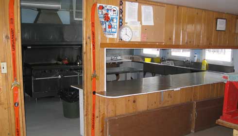 The dining facility in Watson Lodge seats up to 65 people. Seating is camp style on benches, 5 people to a bench. The dining hall has an easy to clean, high quality commercial linoleum installed in January, 2008.